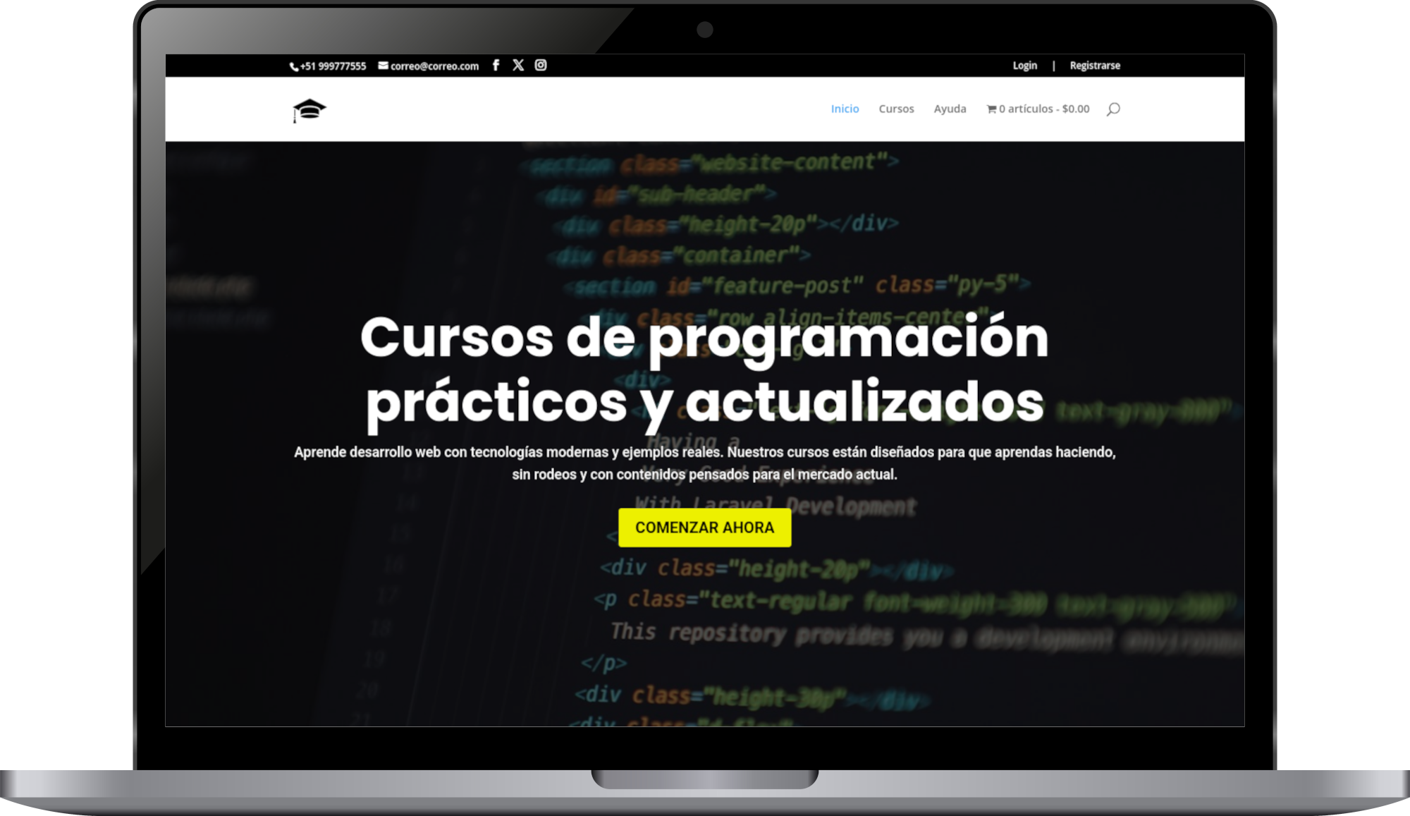 Plataforma educativa con venta de cursos online, área de estudiantes y sistema de pagos integrado.
